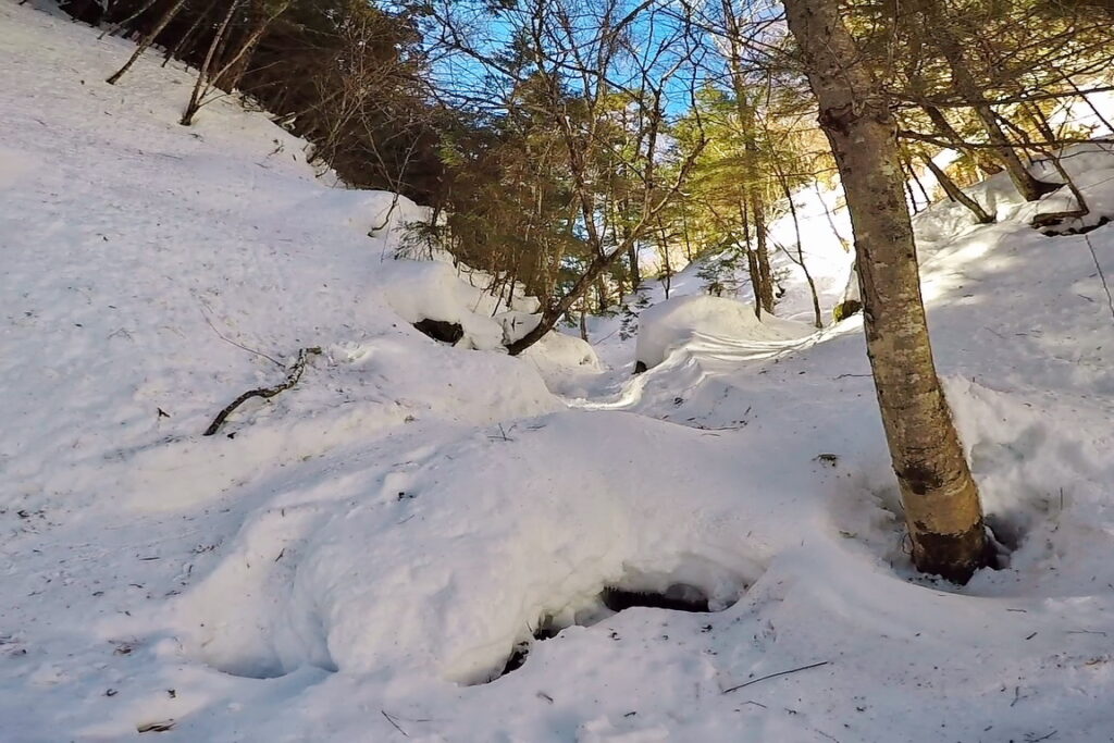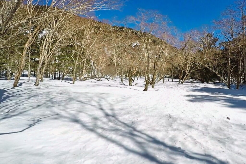 雪質も固いため、雪の森歩きを楽しみたい方は来シーズンを待った方がよさそうです。