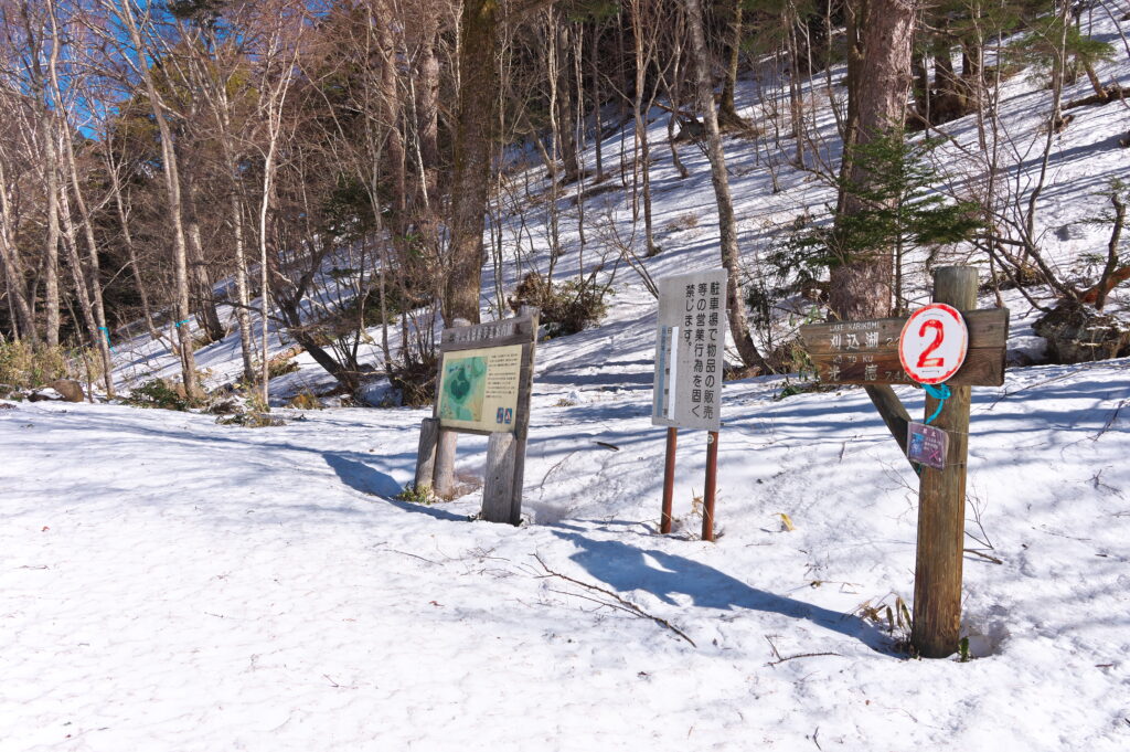 スノーシューやチェーンスパイクなどは、金精道路に出てから装着した方がよさそうです。
