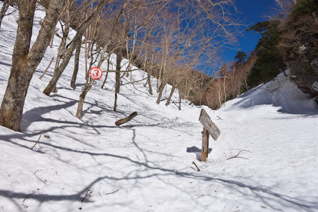スノーシューコース③小峠より先はスノーシューの正規ルートから外れます。