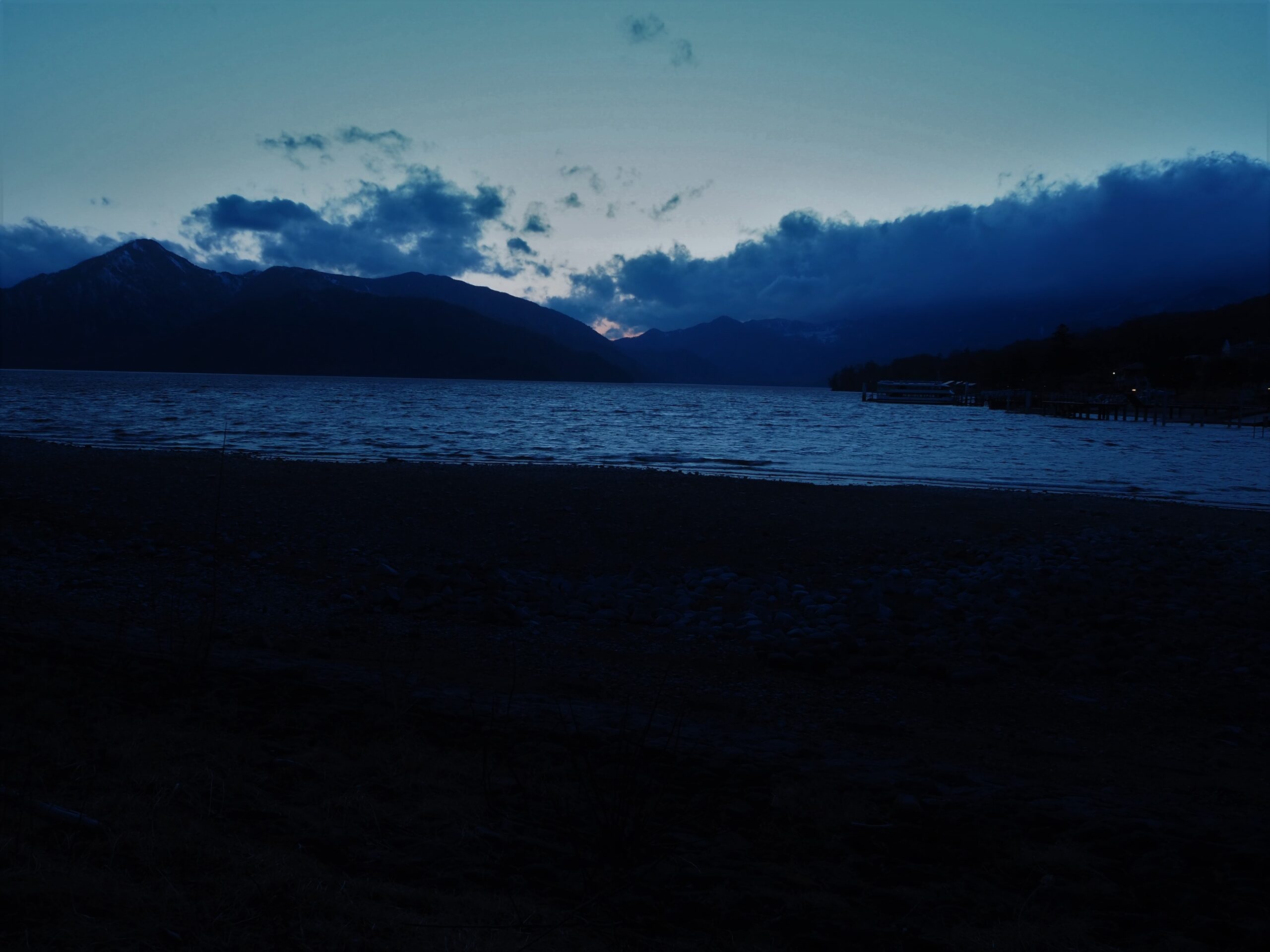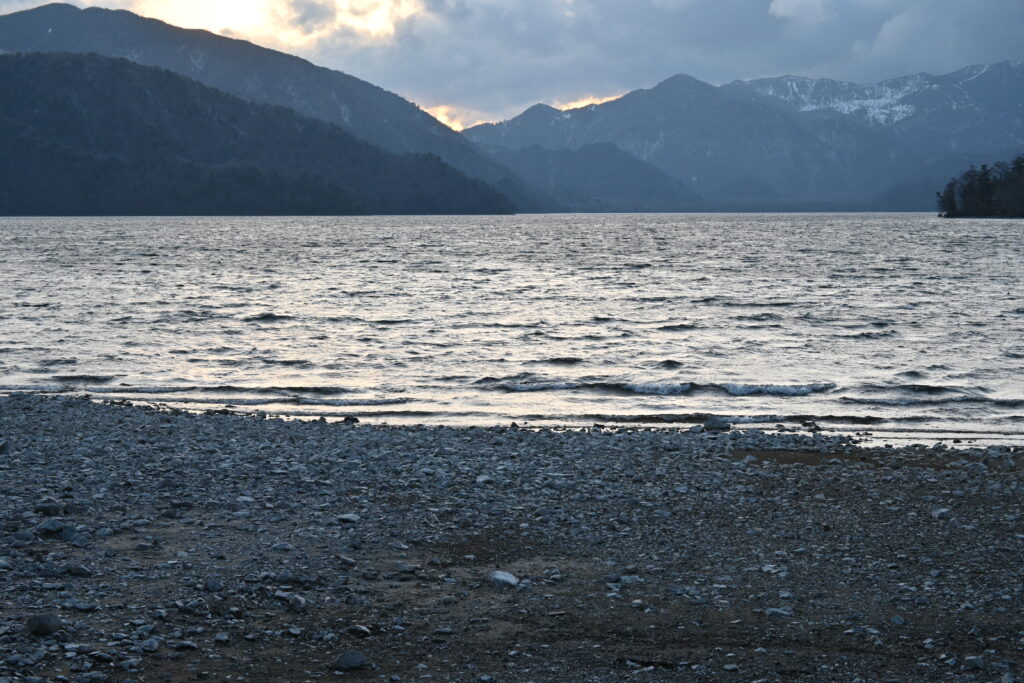 今回は夕方から夜に移り変わる時間帯の中禅寺湖畔へ。中禅寺湖畔ボートハウスから湖畔の北岸部を通り中禅寺湖畔の大鳥居付近の浜辺に向かいました。
