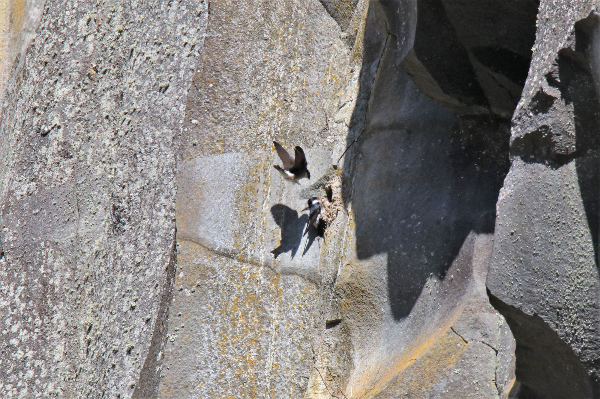 私自身もこんなに大きな声で鳴くイワツバメたちを初めて見たので何事かと様子を伺っていると…。