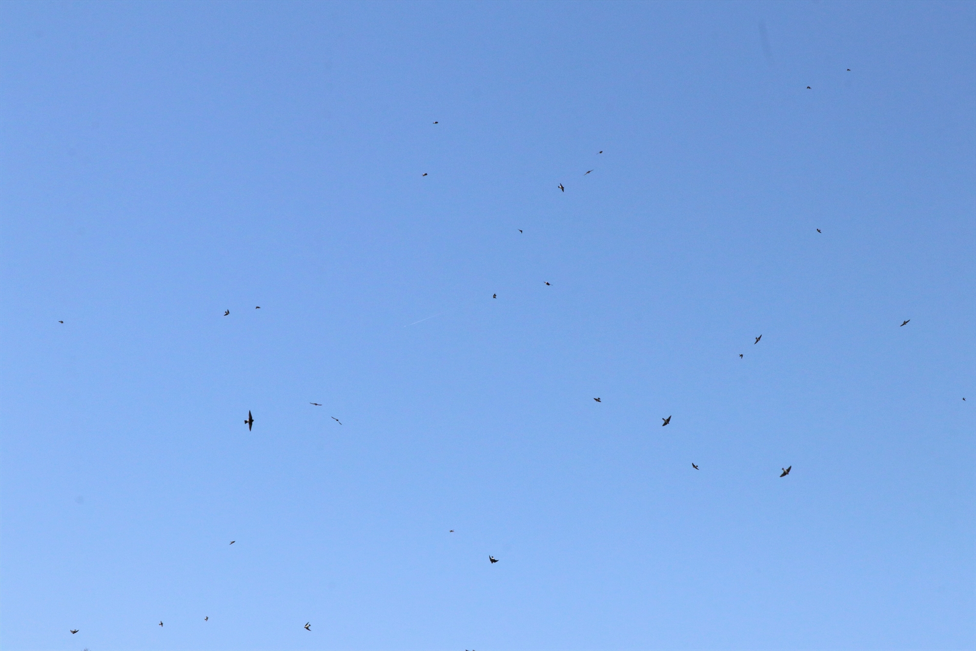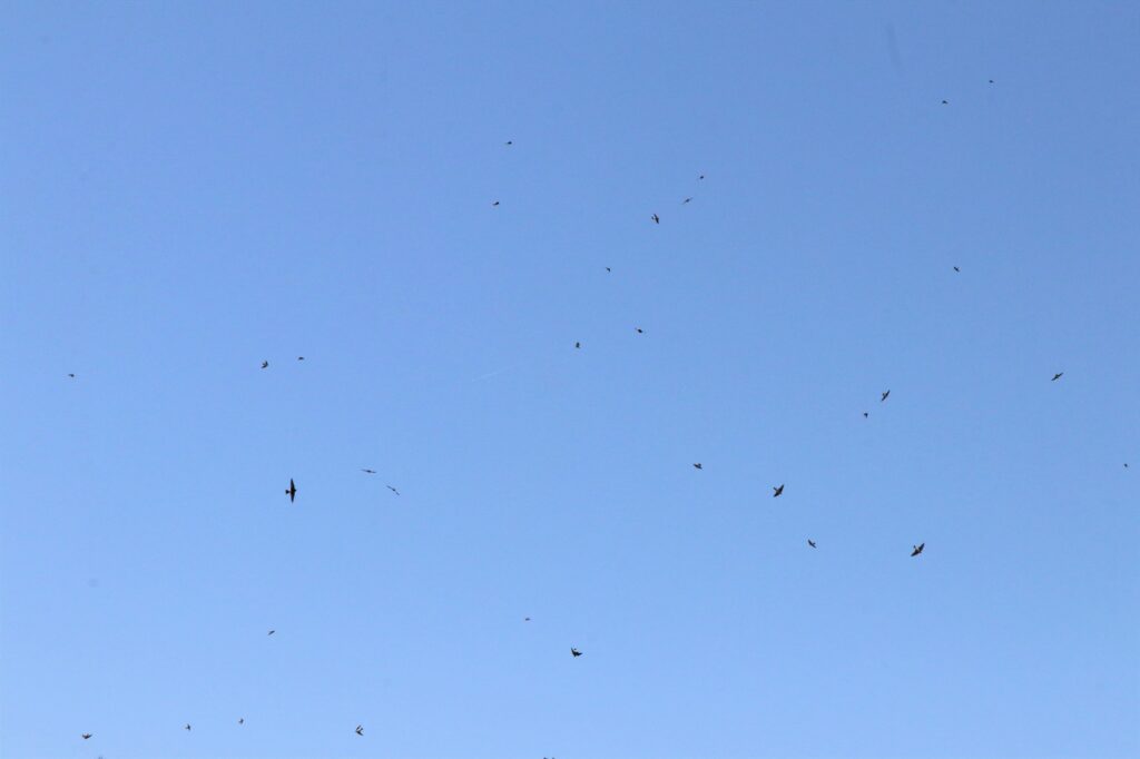 イワツバメたちが大きな声を発してから数秒の出来事。イワツバメたちは群れでいることによってすぐに天敵に気付き、逃げることが出来たようです。