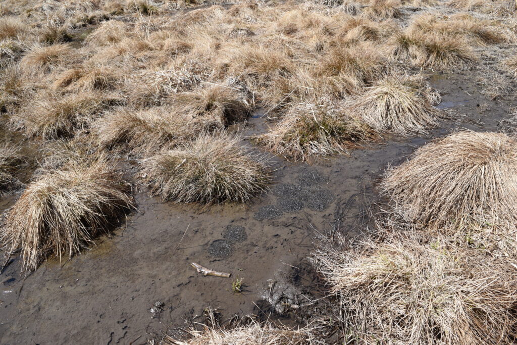 光徳沼でヤマアカガエルの卵塊を見つけました。