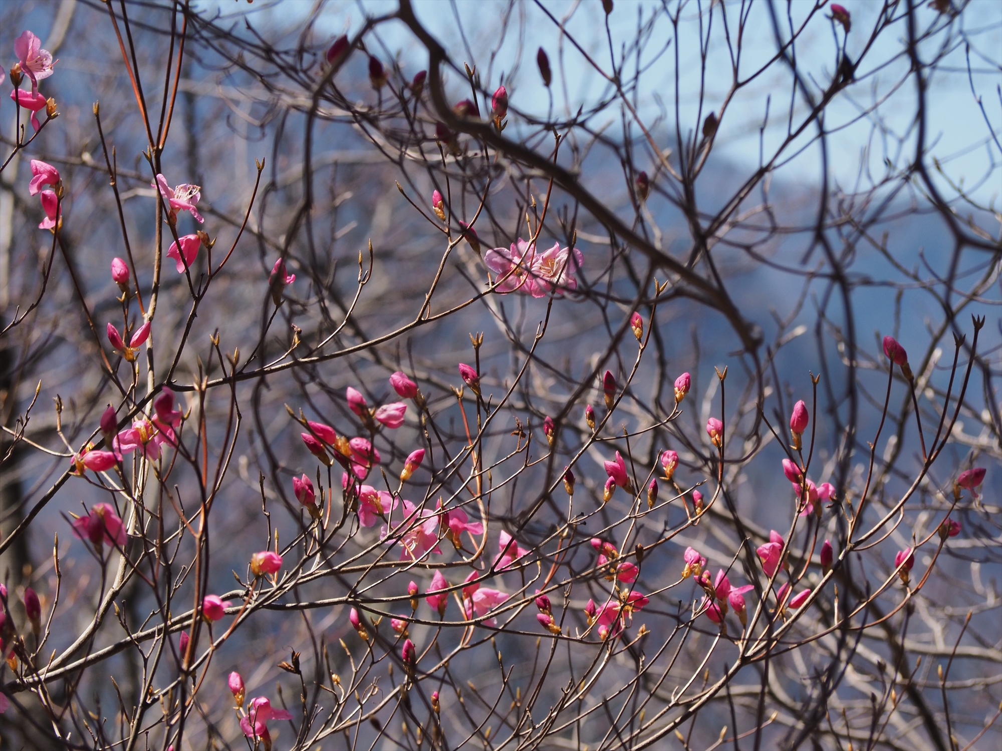 奥日光では最前線!?な、アカヤシオ開花前線を確認。