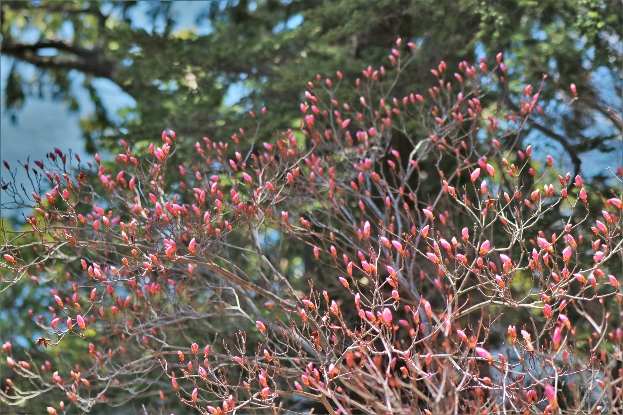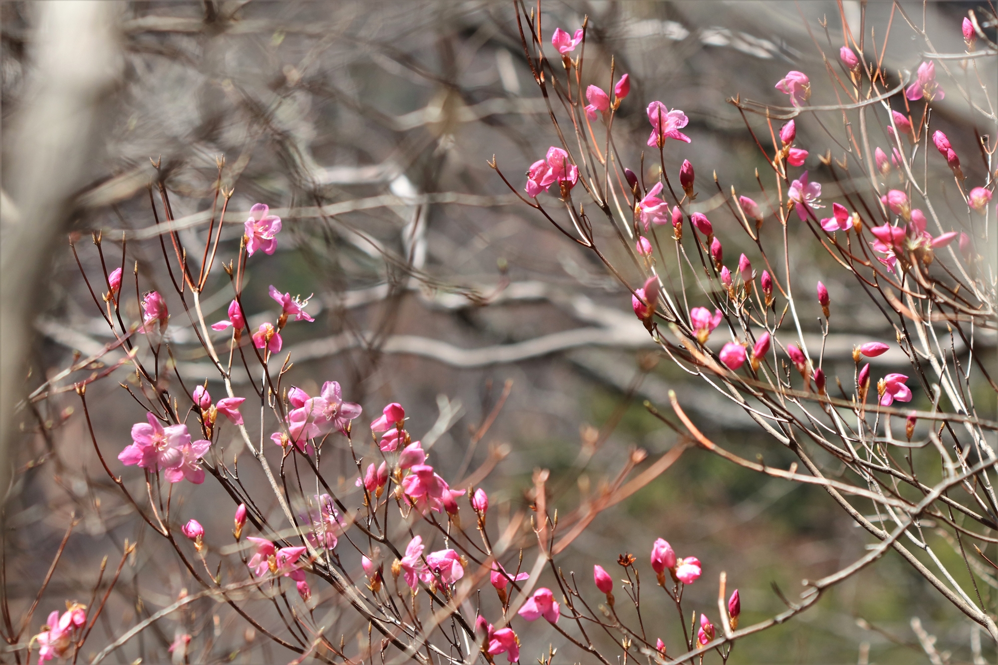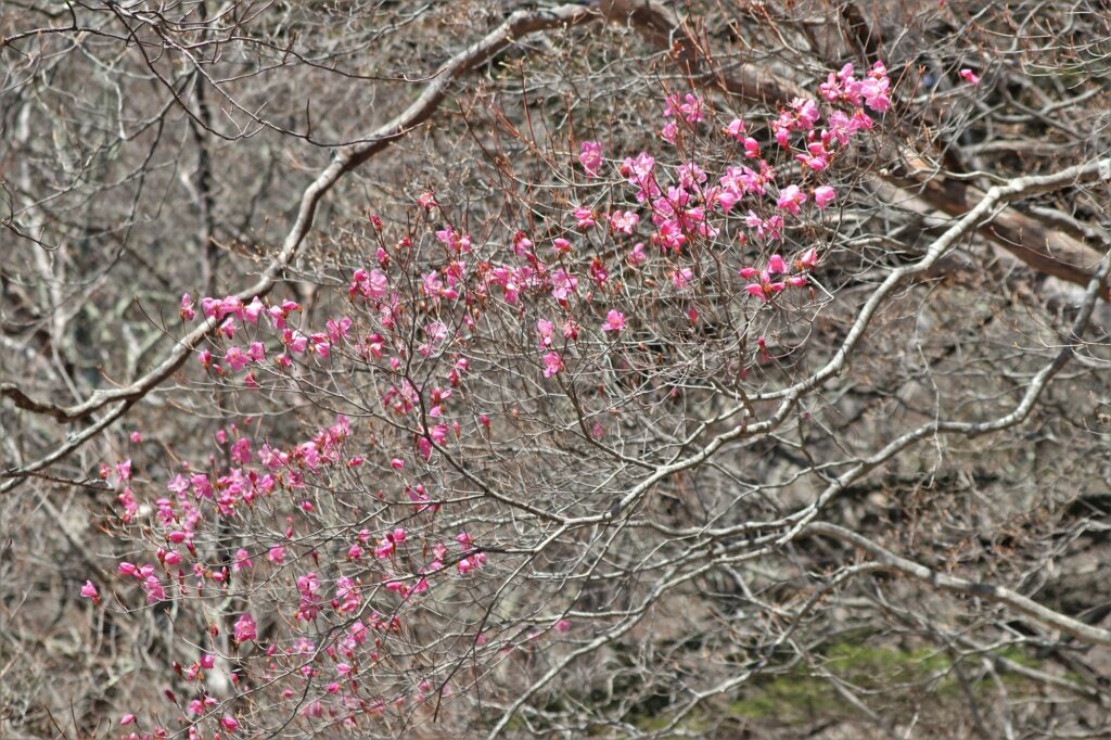 奥日光の春を代表するアカヤシオです。日当たりの良い場所では咲き始めているものも見受けられました。