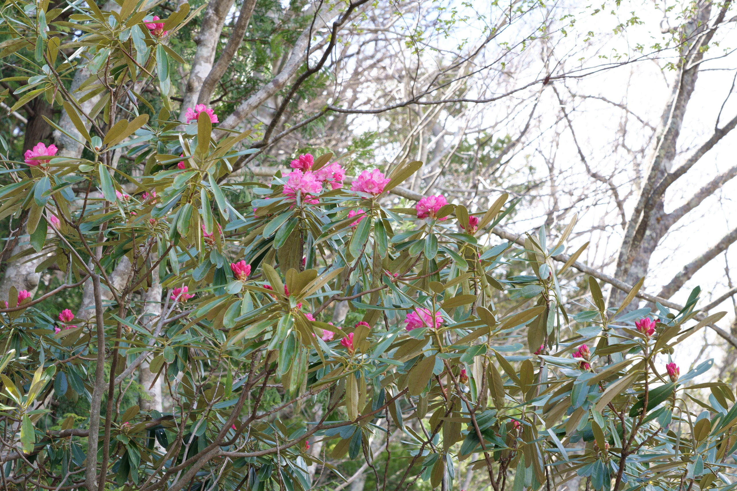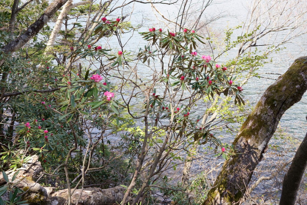 本日、湯ノ湖西側の日当たりの良い場所で、アズマシャクナゲの一部開花を確認しました。