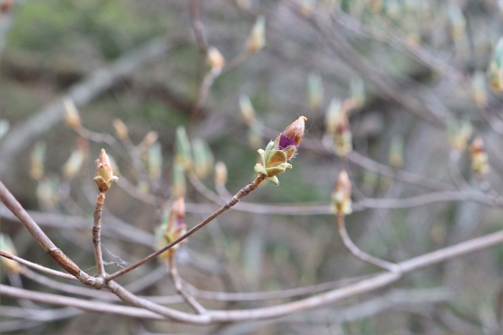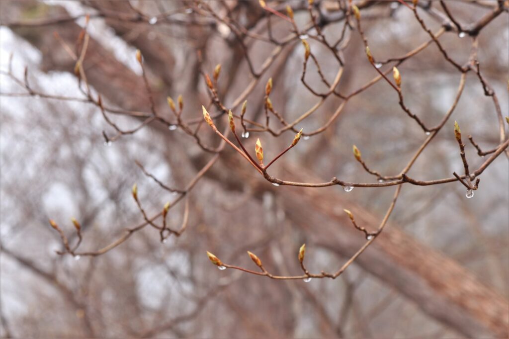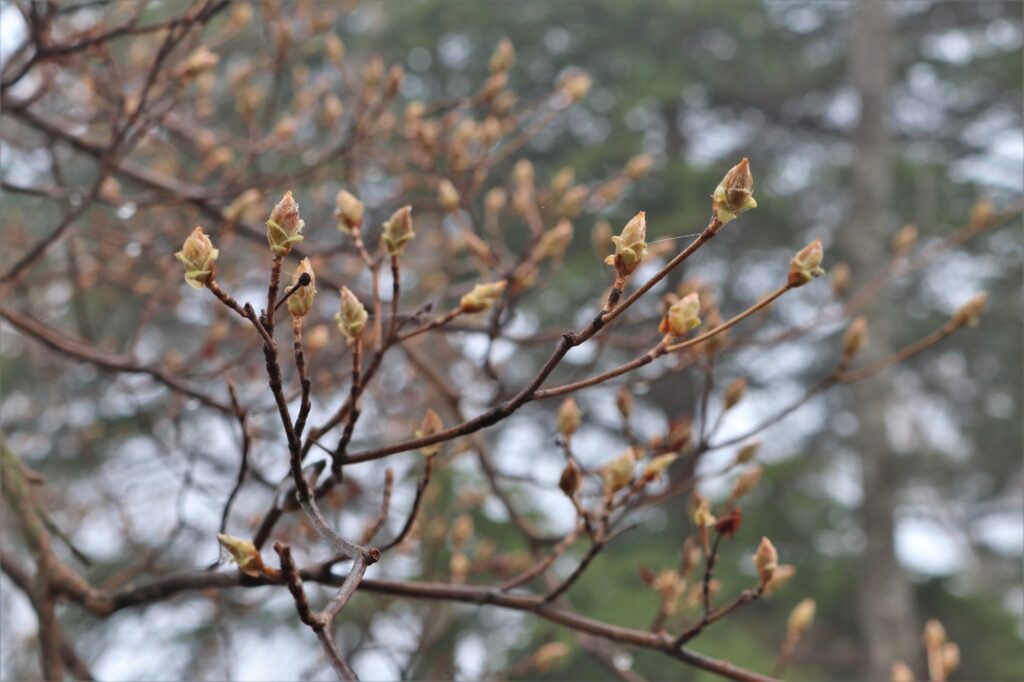 シロヤシオのつぼみはまだ固い状態でした。咲き始めるにはまだまだ時間がかかりそうです。