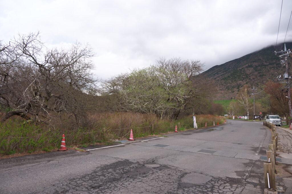 国道から赤沼駐車場に向かう道にはズミが並んでいますが、まだあまり葉の緑が目立ちません。