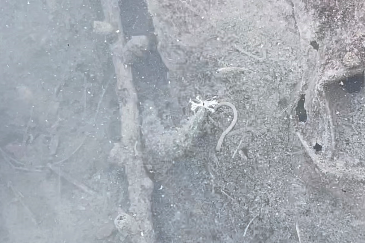そんなアツアツのお湯溜まりをよーく見ると小さく細長い生き物の姿が。