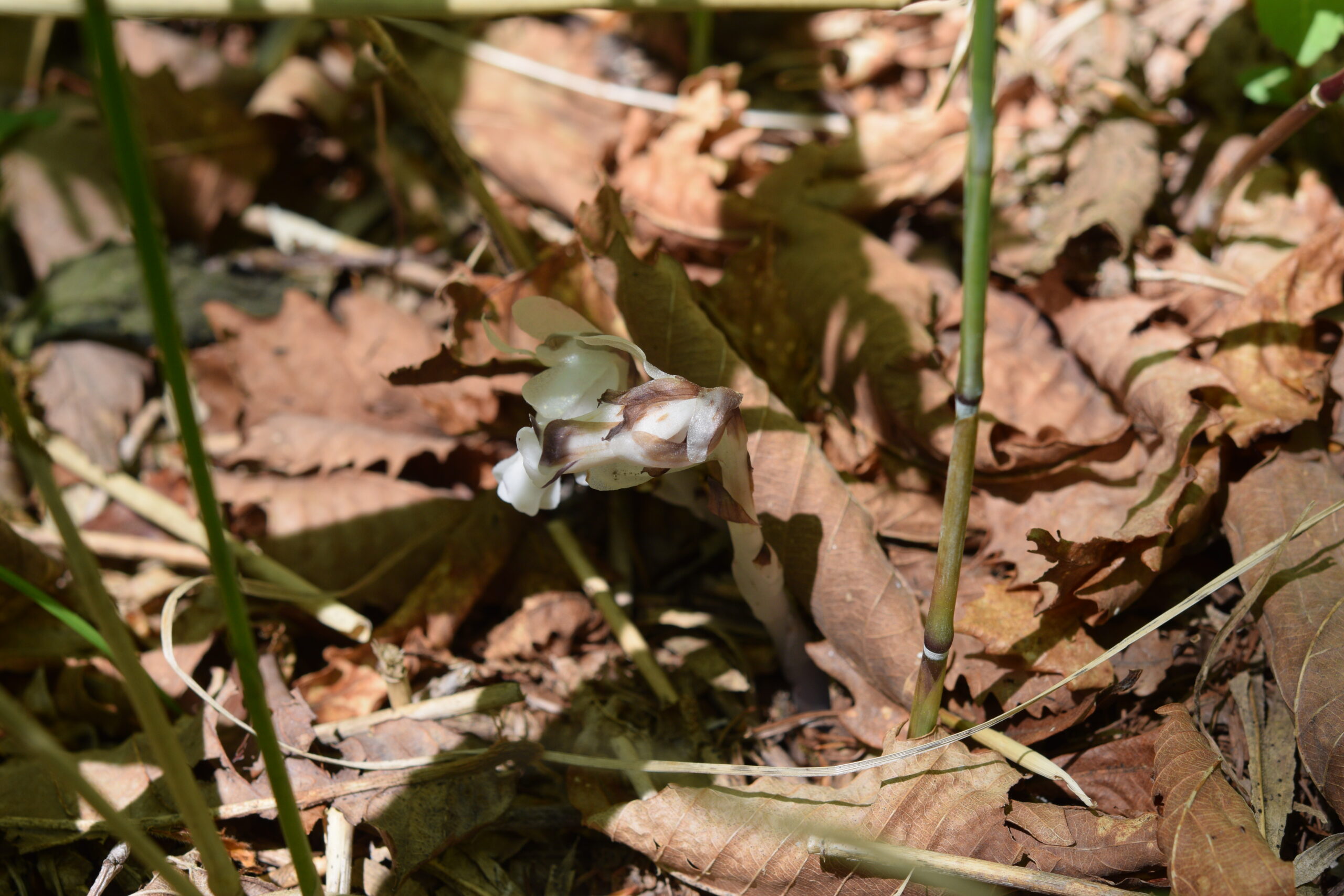 私は植物が好きなので何か咲いていないかな~と足元を見ながら歩いていると、ササの下にひっそりと隠れていたギンリョウソウを見つけました!