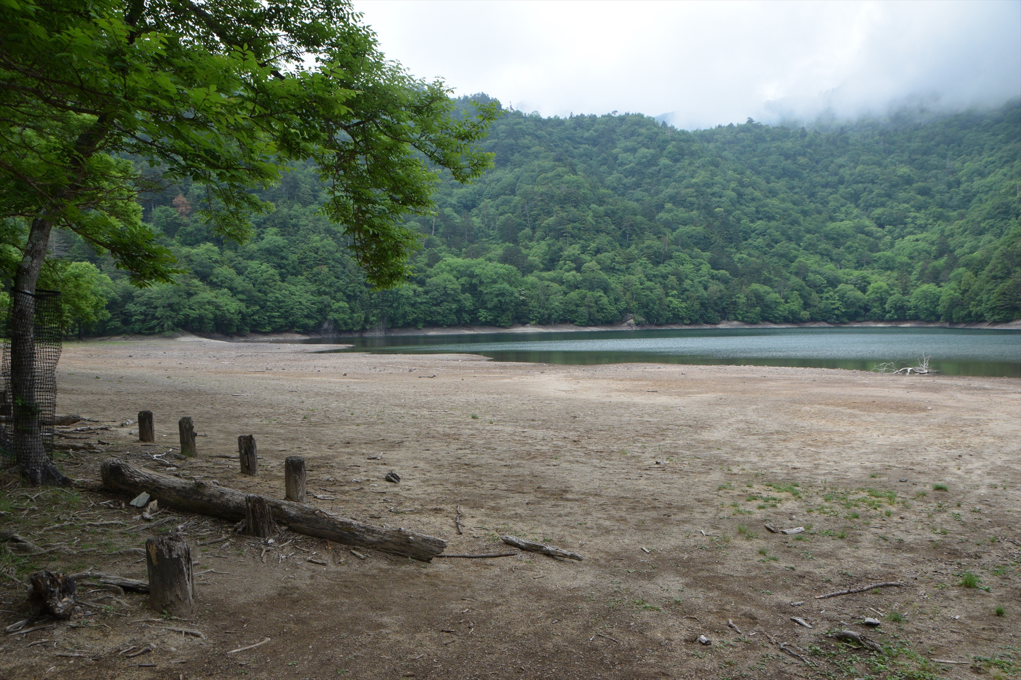 現在の西ノ湖は、水は少ないですが水際近くは足跡がはっきりと残るほどぬかるんでいます。