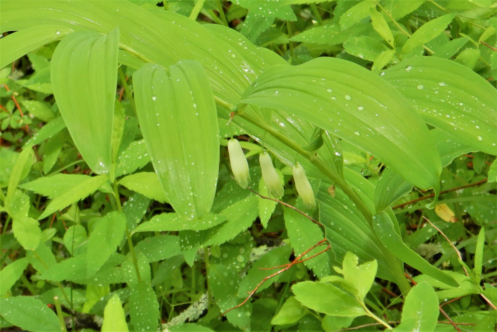 他にもアマドコロの蕾も見つけました。洋ナシのような面白い形の花が特徴的で、ハクサンフウロと共に見つけて欲しい花です。