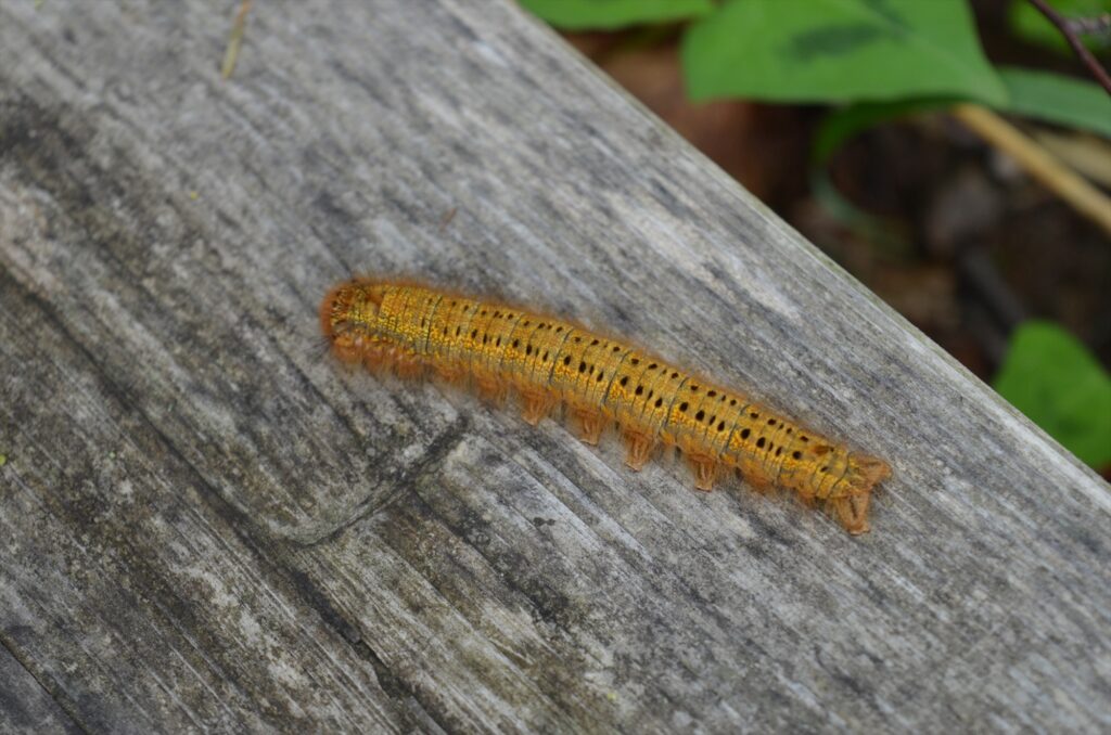毛虫=有毒は全ての毛虫に当てはまる訳ではありませんが、この毛虫はやはり毒のある毛を持っています。金粉を被ったような美しい姿には惹かれるものはありますが、手を出さない方が賢明です。