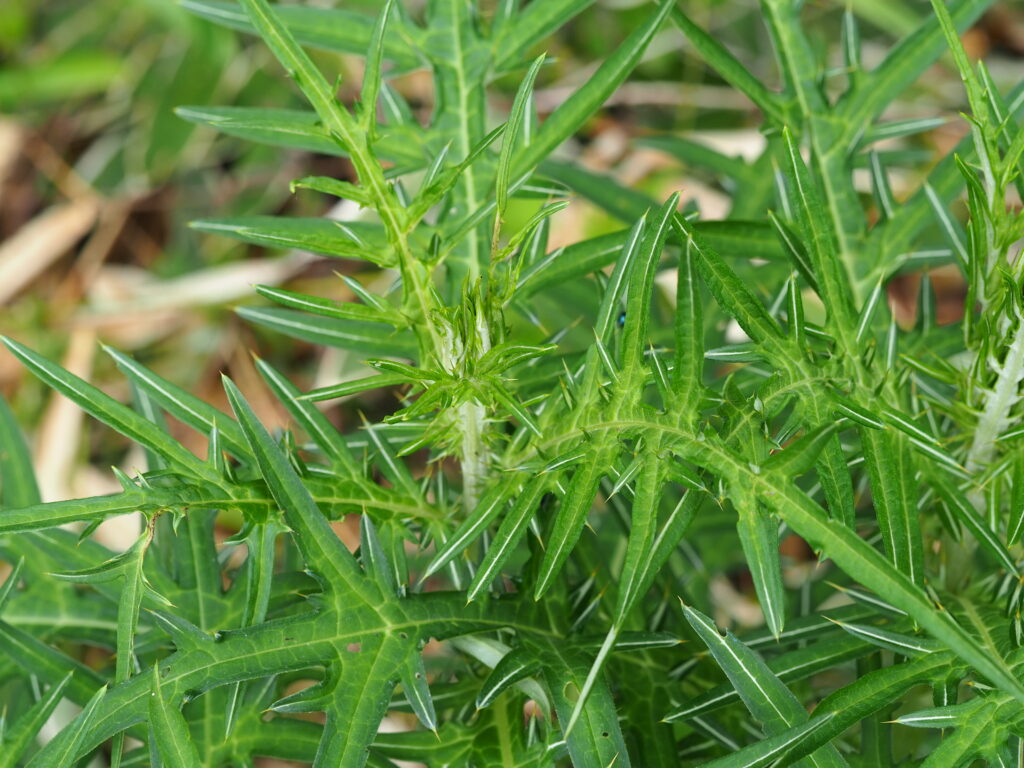 小田代原やその周辺にはノアザミやニッコウアザミなどアザミの仲間が多く見られ、その刺々しい見た目通り、こちらは触れると痛い目に遭います。木道上を歩いていて気付かずに触れてしまい「イテテ.・・」なんてことは何度も。