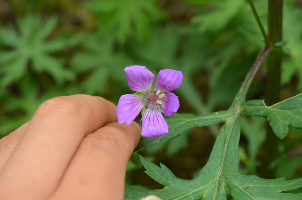 またしばらく進むと、ハクサンフウロを見つけました。驚くことなかれ!実はハクサンフウロは雄花から雌花へと性転換をするんです!