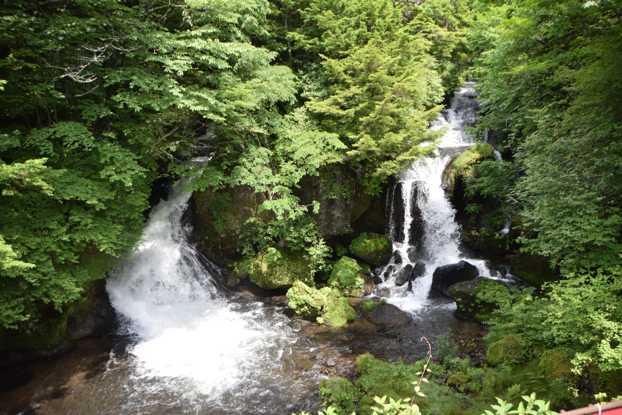 竜頭滝に到着。今までの疲れを勢いよく流れる水と一緒に流してくれるような気がします。この暑い夏の時期に見るとより爽快感が感じられますね!