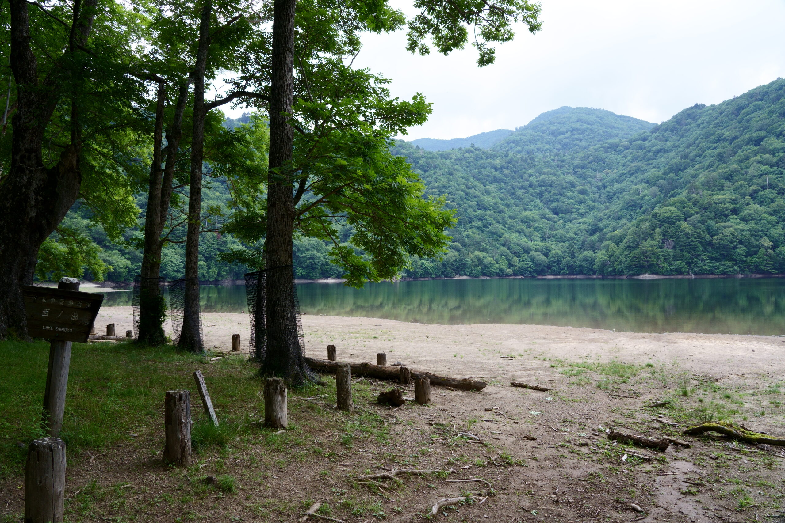 割合としては満水時の6割程度、静かな水面に周りの景色が反射し、何とも神秘的な湖です。