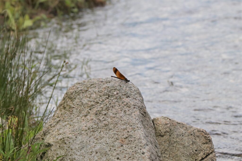 初めて見るトンボだ!飛び方からカワトンボの仲間だ!とわくわくしながら事務所に戻り調べましたが、名前の判明までは至らず…。