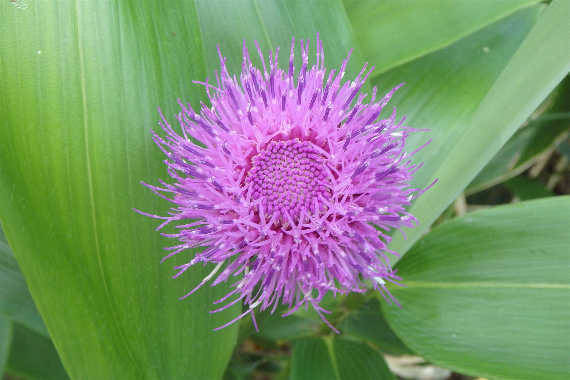 なんとノアザミは雄しべの先から花粉を噴出するんです!そうすることで昆虫の体に花粉がくっつき違う株に花粉を運んでもらうというわけです。また、昆虫が来てないときは雄しべの中で、花粉は雨や風から守られています。