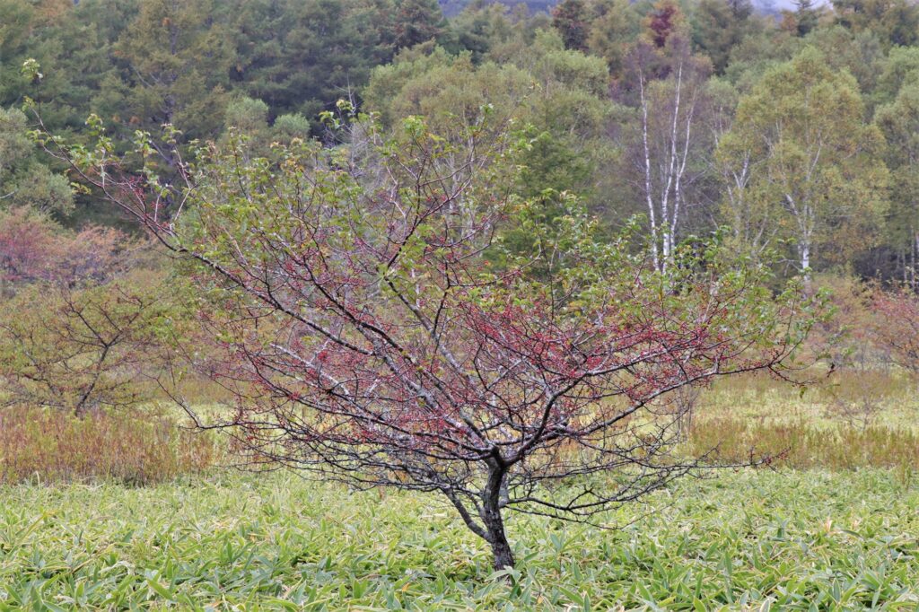 しかし、草紅葉だけではなく、周囲を見るとすでに紅葉しているように見える木が…!?