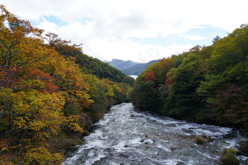 1800m付近の金精道路では既に紅葉が見ごろを迎えておりますが、今回はそこから少し下り、湯元周辺と竜頭滝周辺の紅葉状況を見に行きました。
