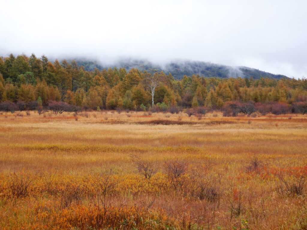 小田代原の草紅葉はいよいよ終盤。「赤が!赤が!赤が!!」という方にとっては終わりだよねェと言われる状態ですが、