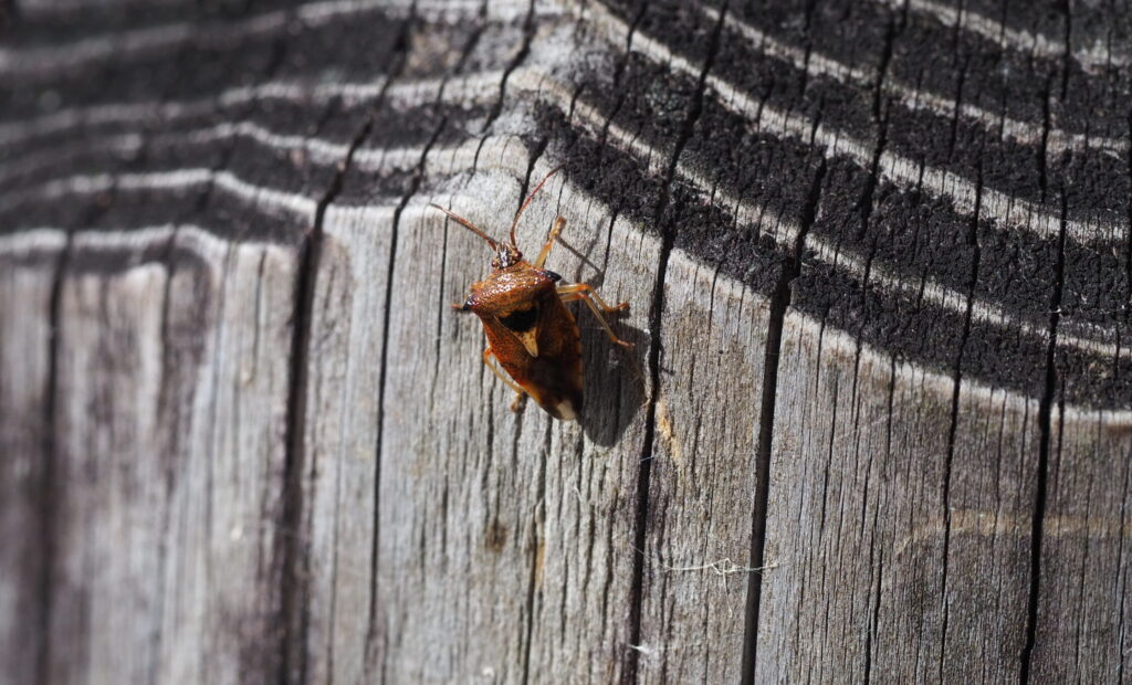 赤っぽい茶色のセグロヒメツノカメムシにも遭遇!「今日はよくカメムシに出会うな~」と思い見ていると