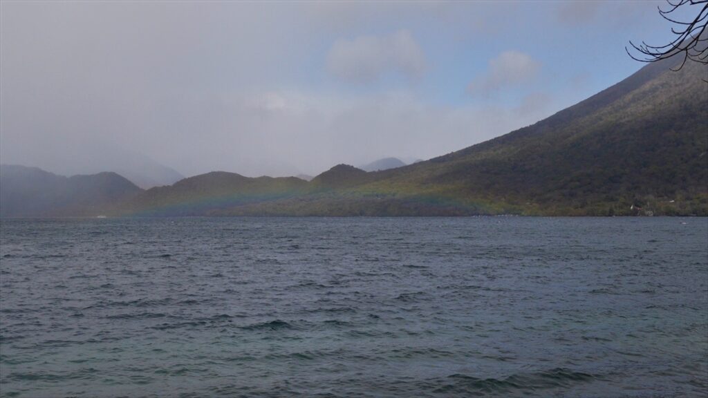 大きな虹が中禅寺湖の上にかかったのです!かなり鮮明に色がでていて、ばっちりカメラに収めることができました!