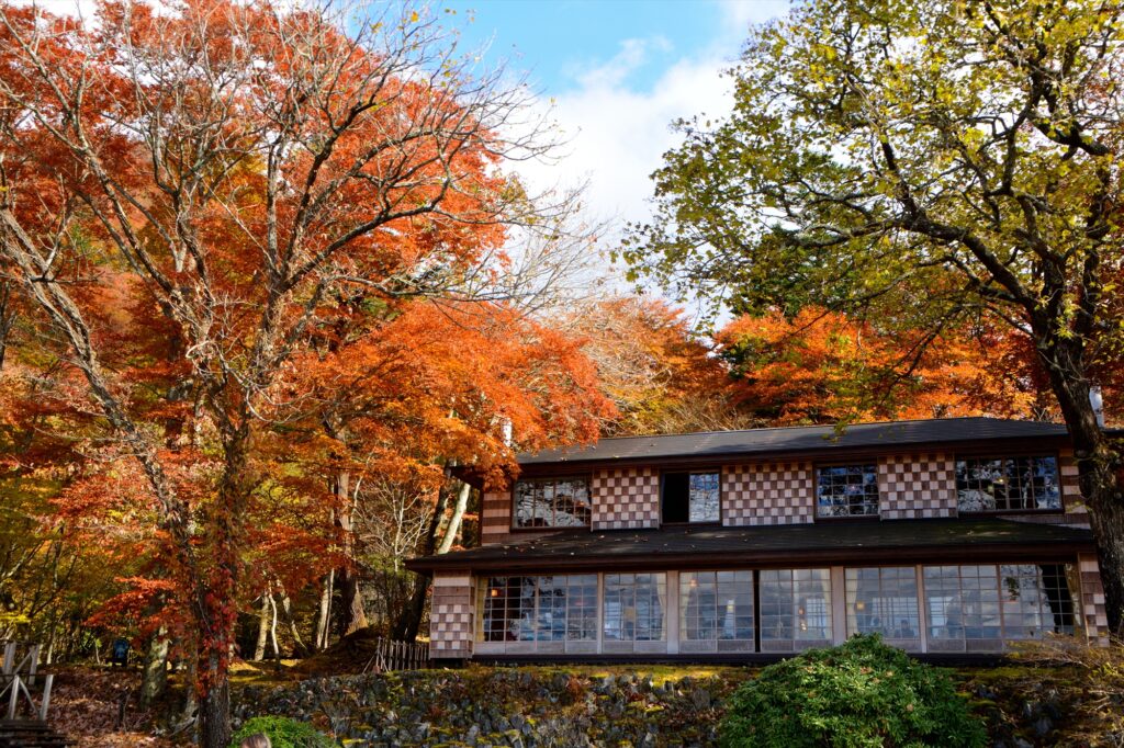 色づいた景色の中に立つ旧イタリア大使館別荘は息をのむ美しさ。一見の価値ありです。