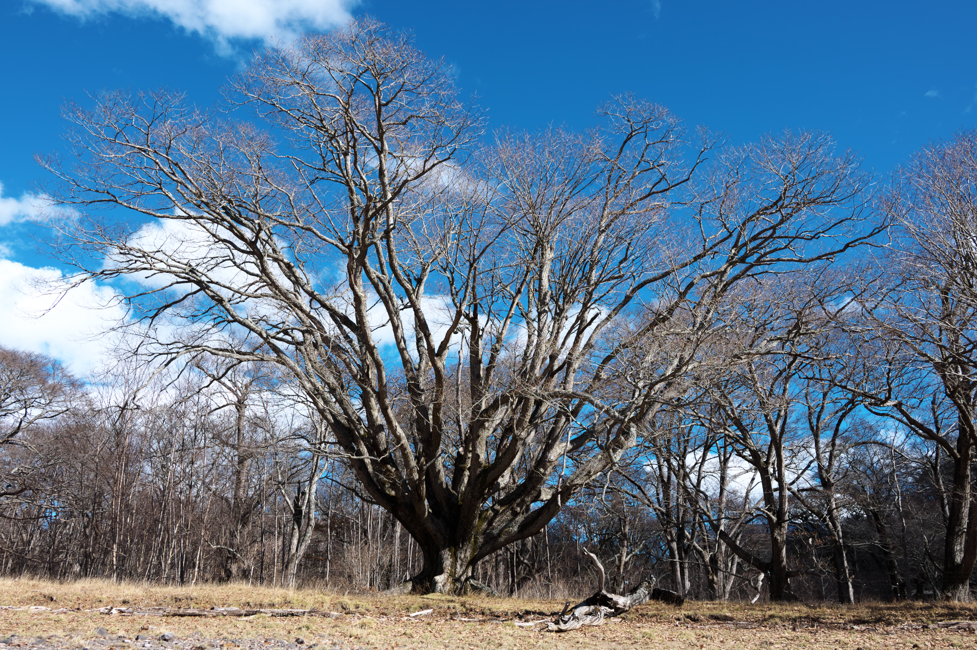 2つ目は、ミズナラの巨木と男体山と一緒に見られる角度!