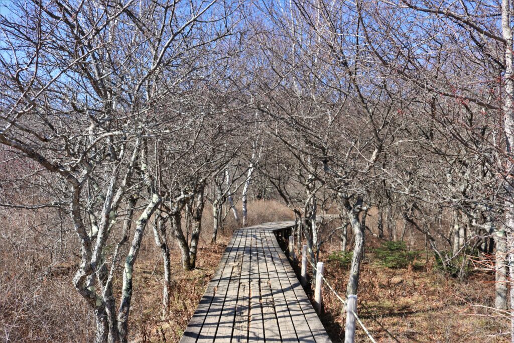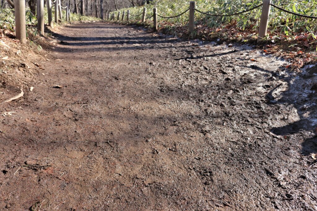 ただし、前半にお話しした霜柱がきれいな状態で見られるのは朝の気温が低い時だけなので、溶けてしまうと土の道はぬかるんで歩きにくくなります。安全にハイキングを楽しんでいただくためにも、トレッキングシューズでお越しください。もちろん、防寒対策もしっかりと!(梅)