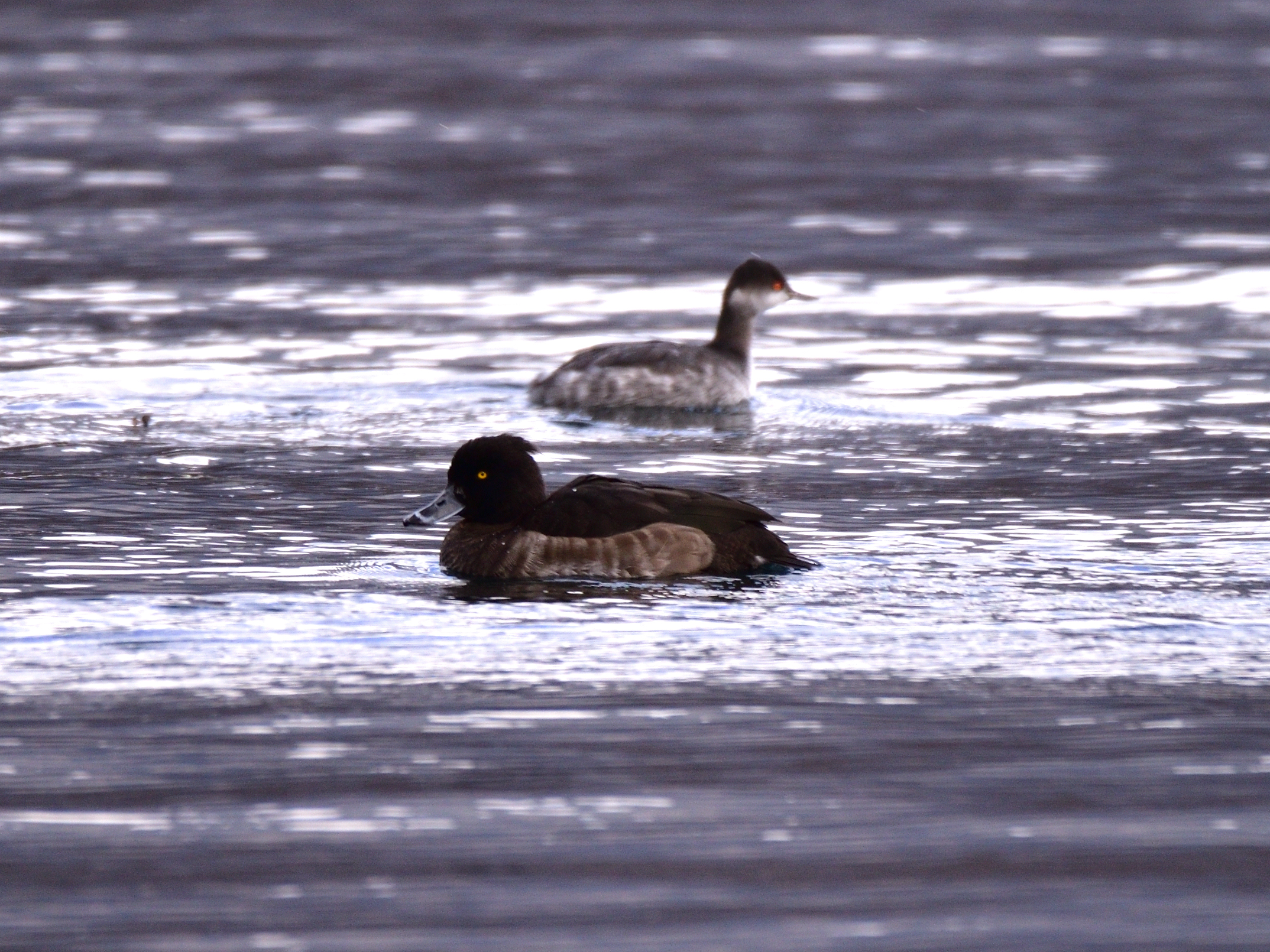 キンクロハジロ(手前)とハジロカイツブリ(奥)