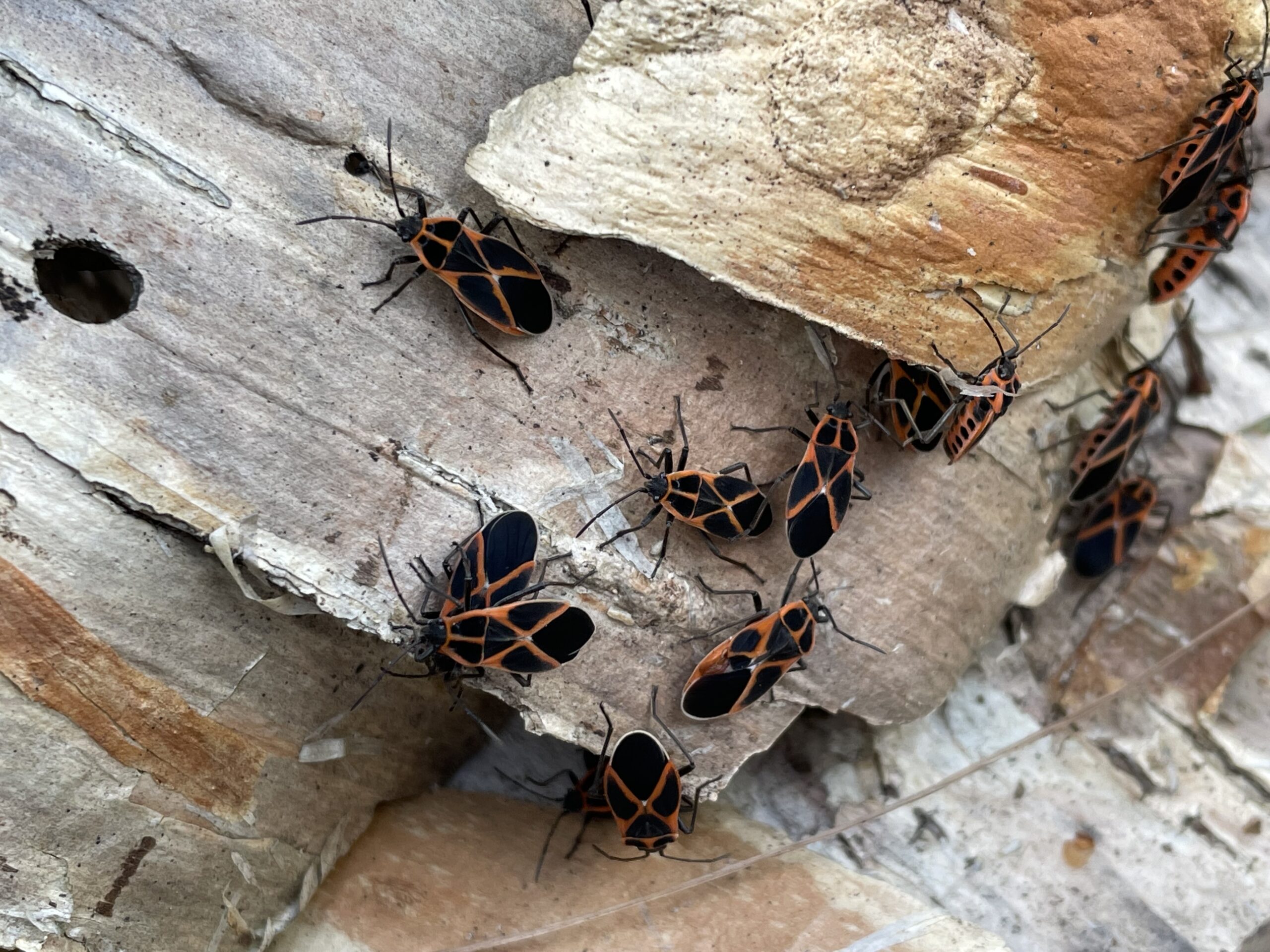 名前のとおり、背中の十字模様がオシャレなこのカメムシ、夏ごろにも一つの植物に群れているのをよく見かけます。