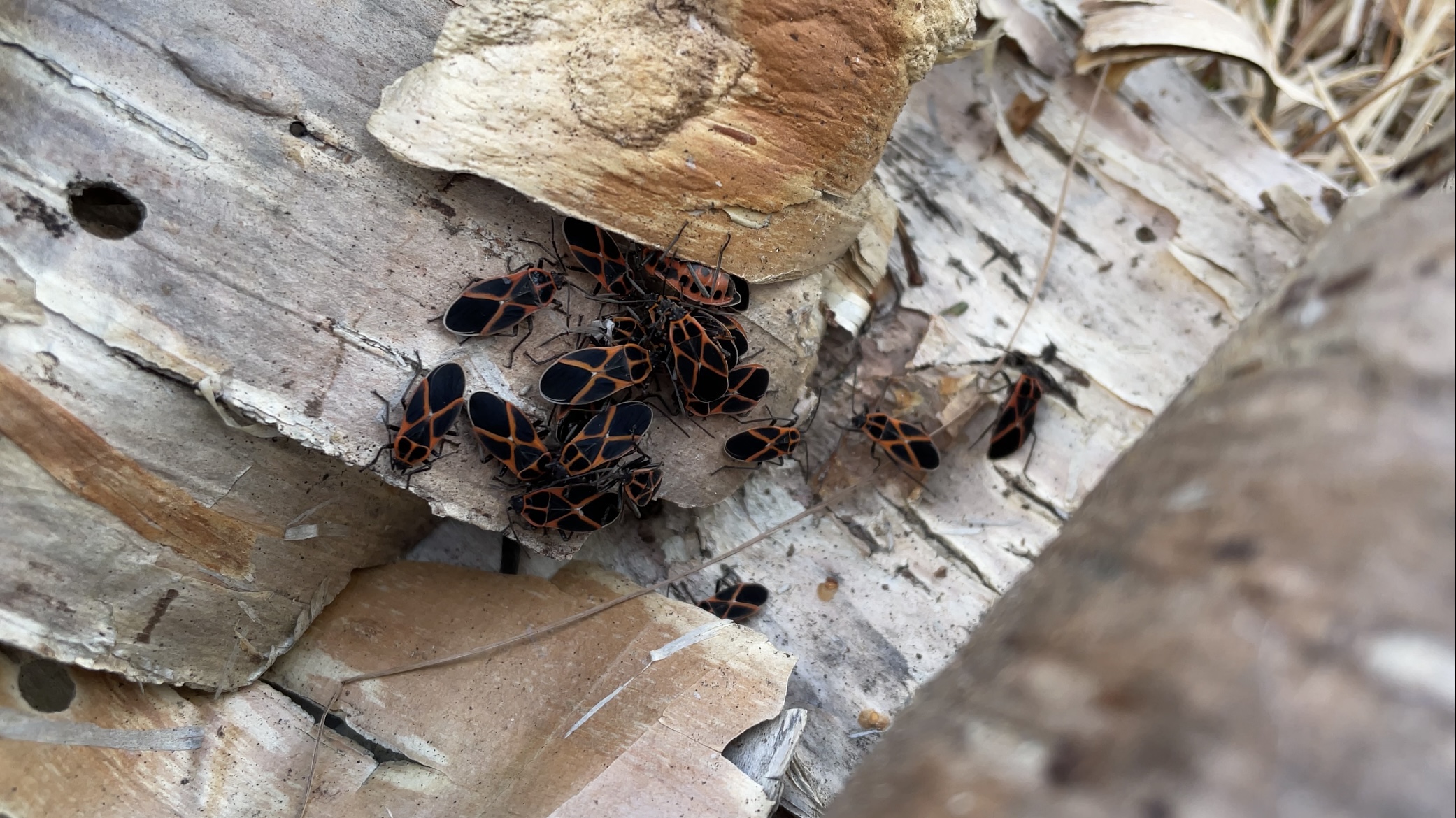突然すみかを開けられて、不満そうにのろのろ動き出すカメムシたち。