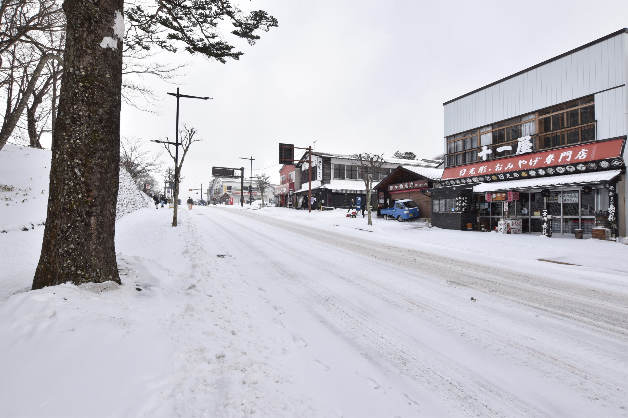 雪の下には氷が隠れており、特に博物館と華厳滝の間の坂道は滑りやすく、注意が必要です。