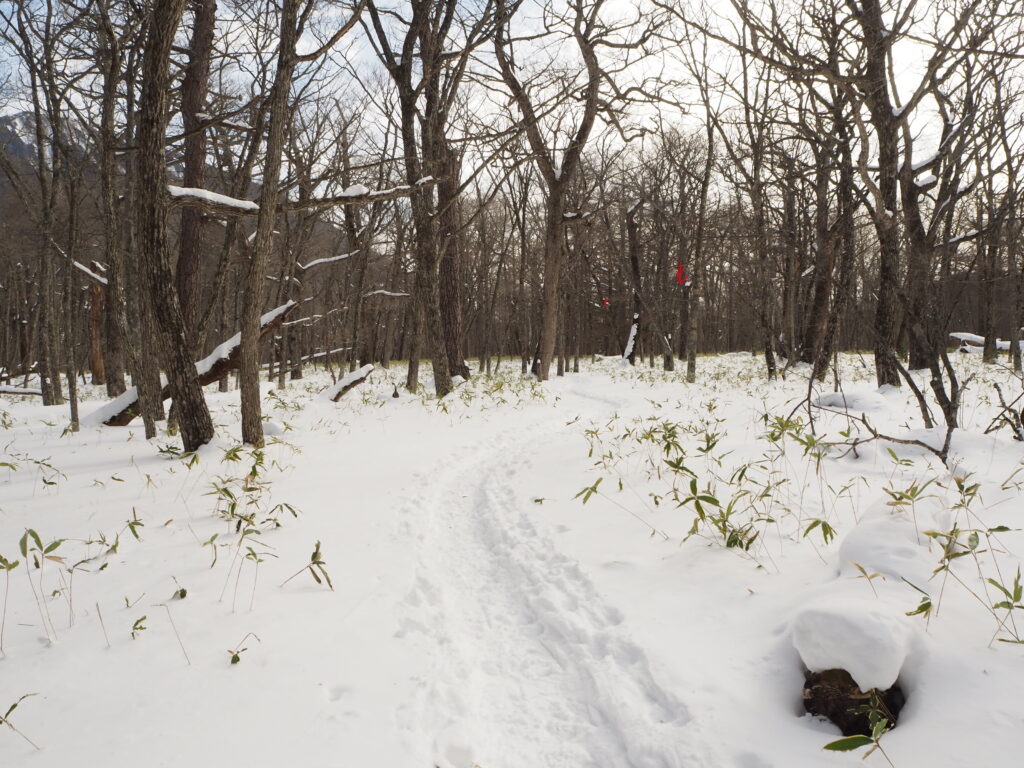 積雪状況や注意点は戦場ヶ原と同様で、踏み跡も多いです。しかし、写真のような誰も足を踏み入れていない真っ新な場所も。