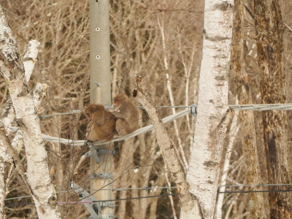 戦場ヶ原近くの国道沿いで出会ったニホンザル。毛づくろい中のようです。こう密着していると暖かそうで羨ましいですね!