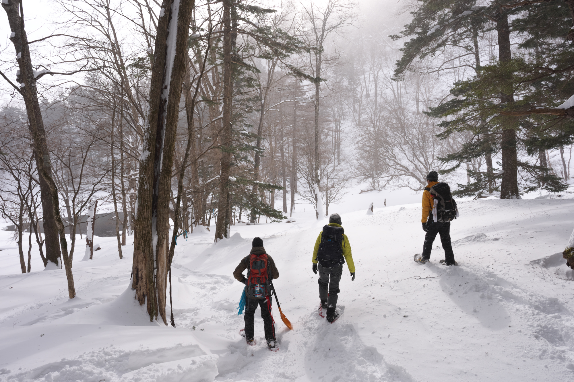 今日は湯元のスノーシューコースの一つ、青色で示される小峠コースを整備。