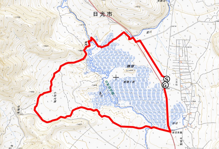 三本松から戦場ヶ原、小田代原を経由して赤沼→三本松まで戻る、約10kmの道のりです。