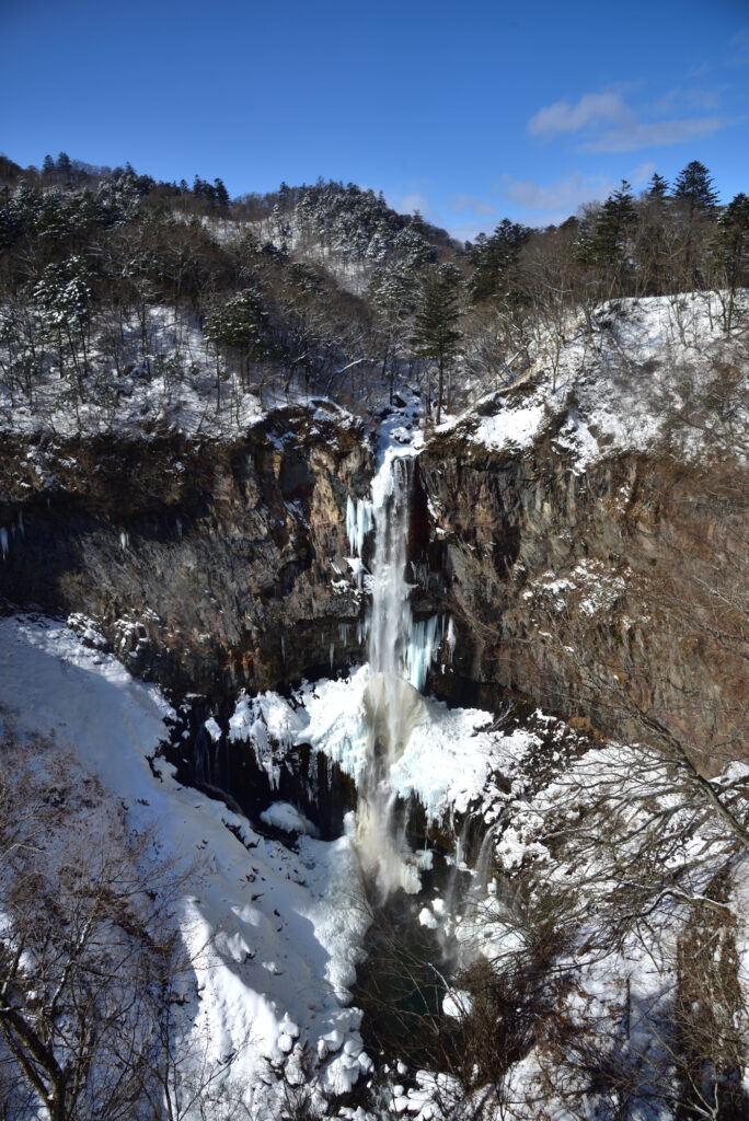 モミの枝に積もったり、華厳滝のつららに積もったり。
