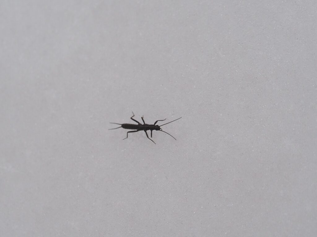 真っ黒で細長いセッケイカワゲラの仲間や