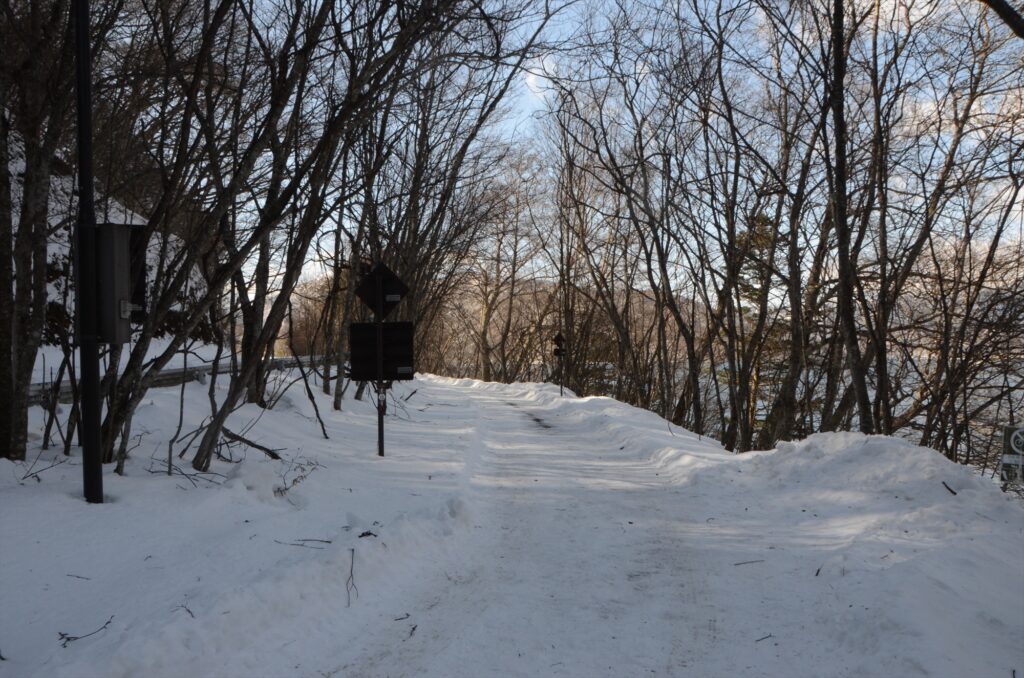 最後に歩道状況ですが、歌ヶ浜駐車場から狸窪付近までの歩道は雪が解けて凍った箇所がいくつかあり、滑りやすいです。