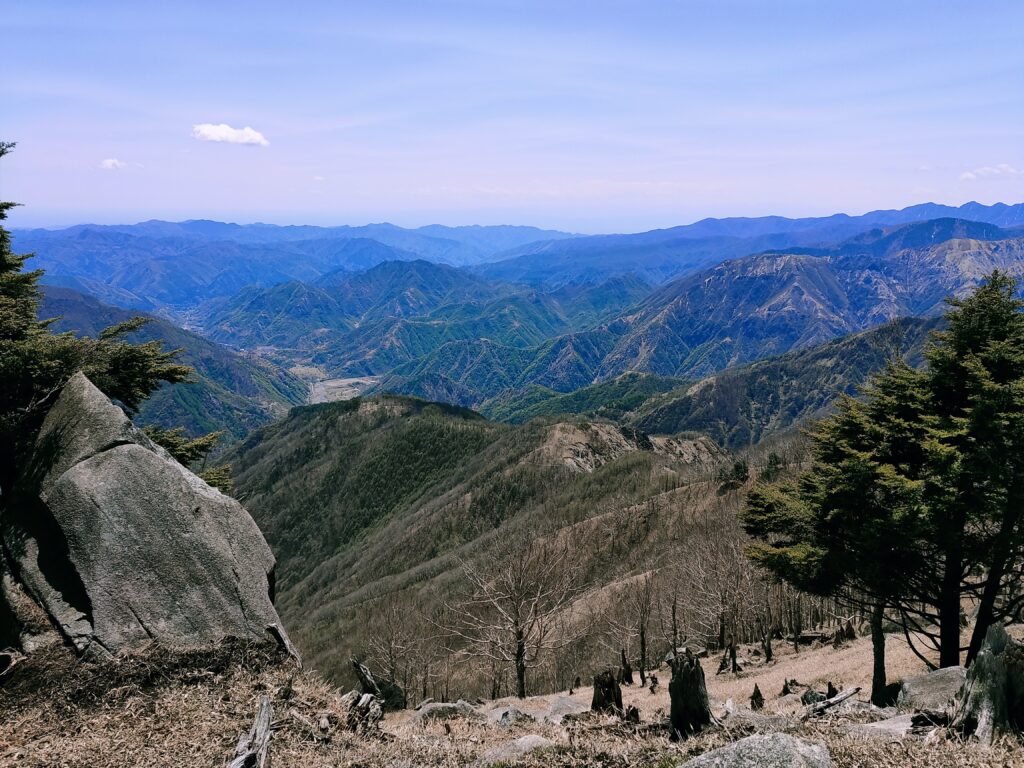 麓を見下ろすと、新緑が上がってくるのがよくわかります。
