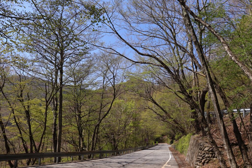 さて、今回はアカヤシオの次に咲くトウゴクミツバツツジと新緑の進み具合をチェックするためにいろは坂を歩いて下りてきました。