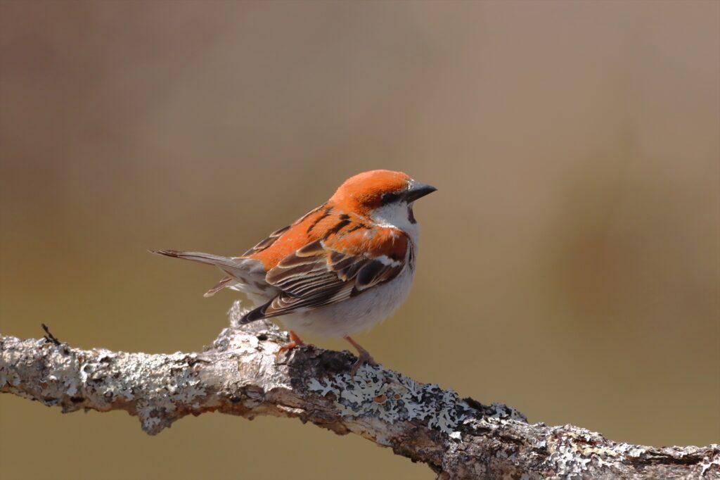 ニュウナイスズメです。一般的なスズメにある頬の黒斑が無く、顔からお腹にかけて真っ白なのが特徴です。スッキリしたお顔がかわいい!