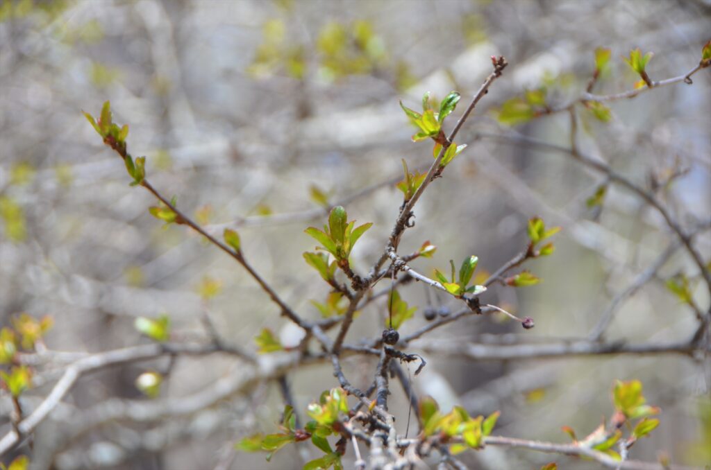 今の戦場ヶ原はまだ枯れ景色が目立ちますが、木道沿いの木々からは新芽が!