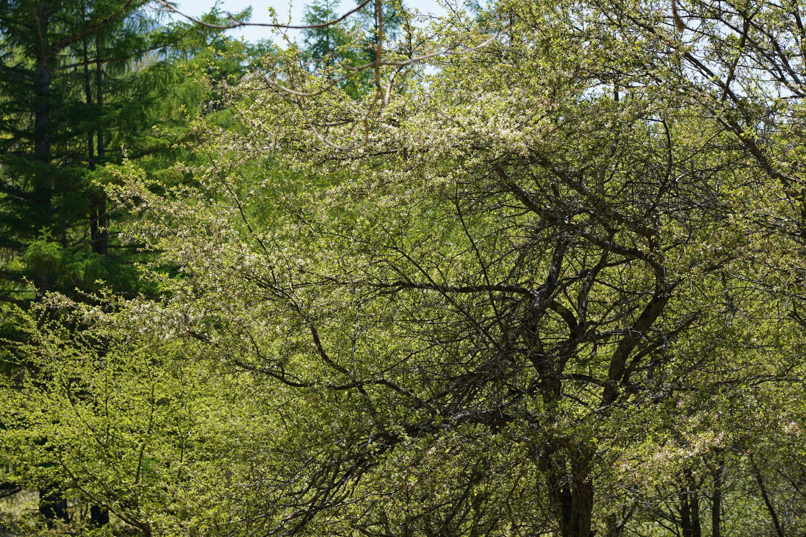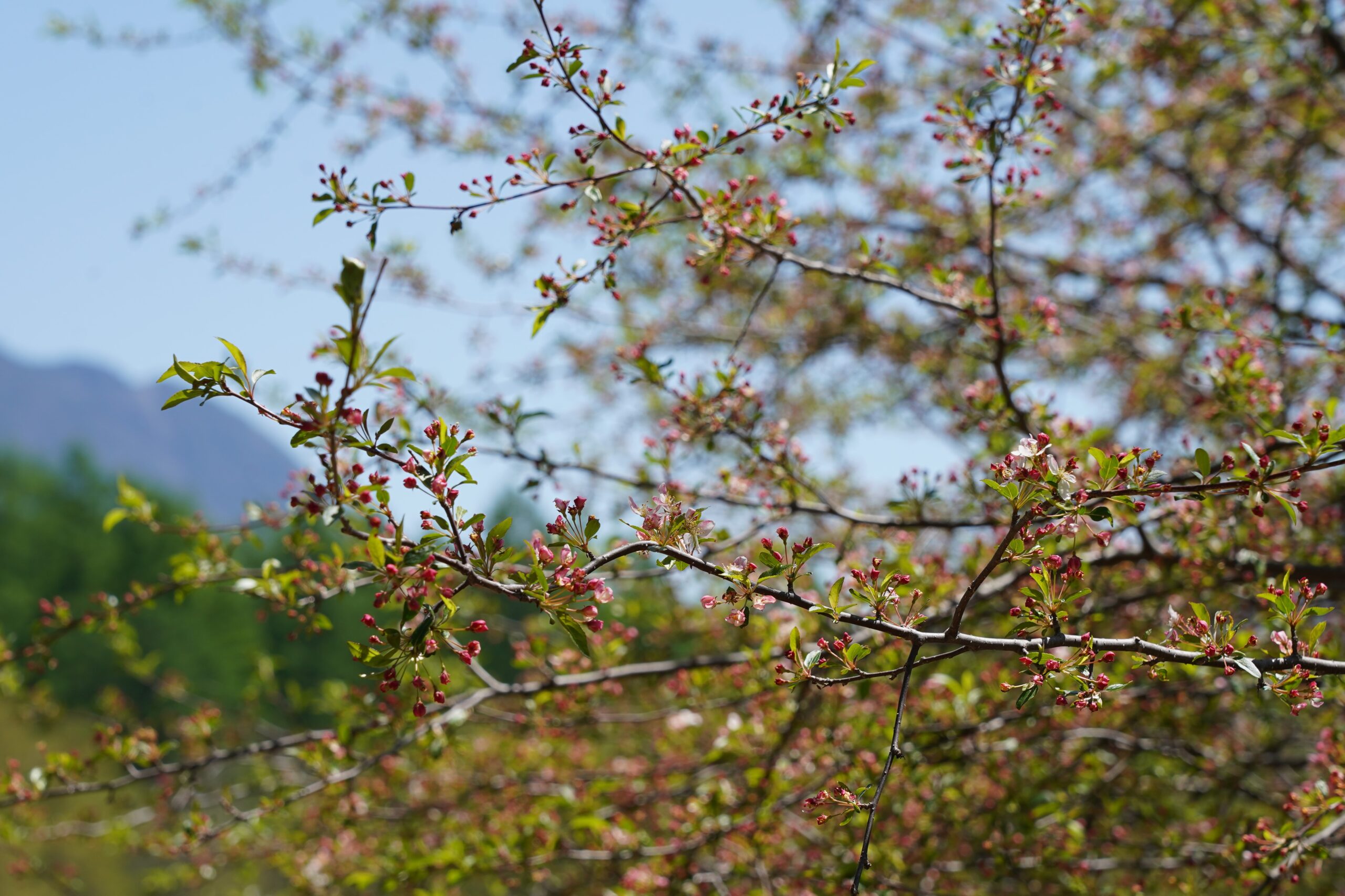 天気の良い日の続く奥日光。戦場ヶ原周辺に続いて、小田代ヶ原のズミも赤いつぼみが多く目立ちました。