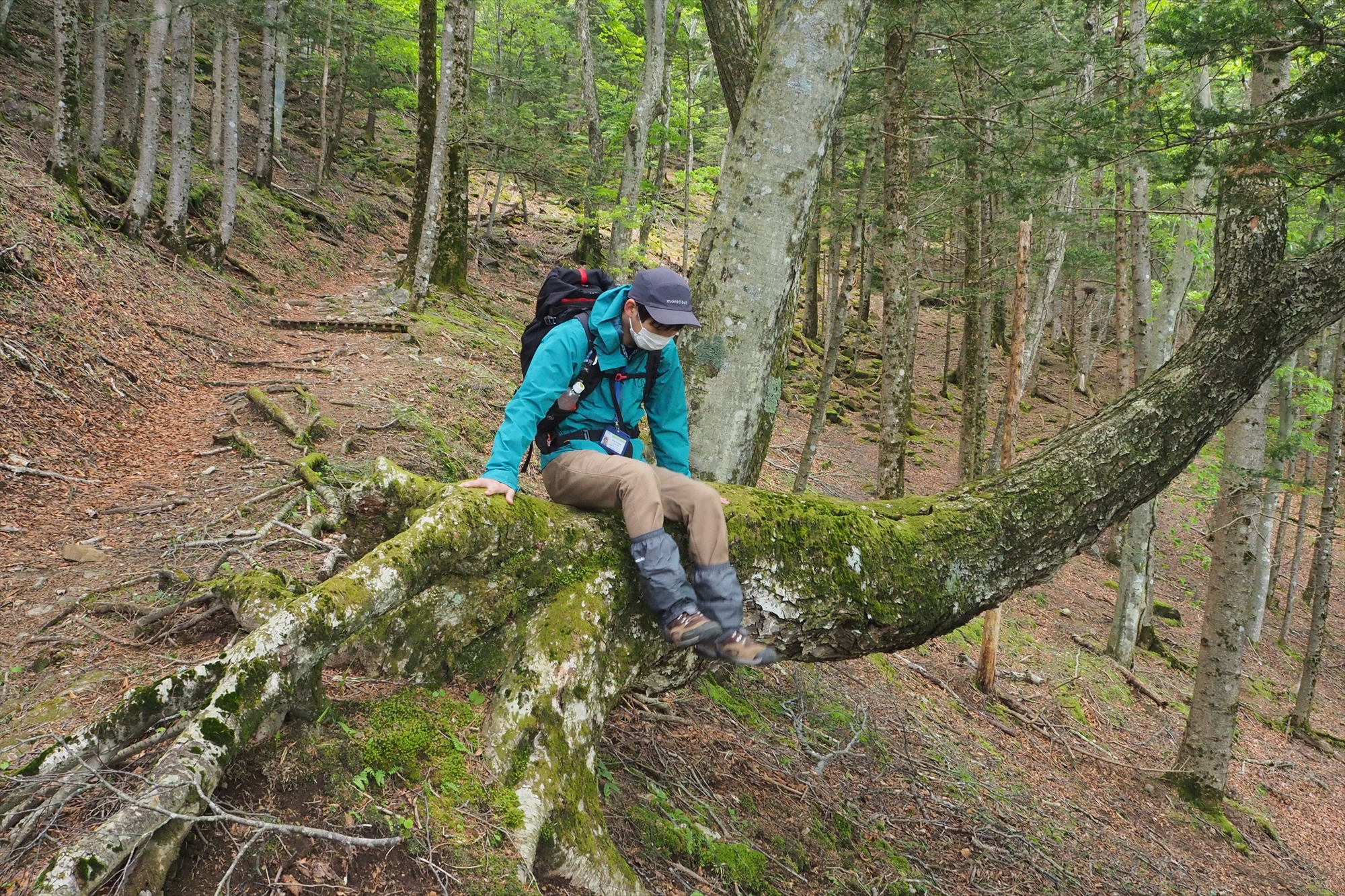さて、ここから1時間ほど、地道なつづら折りの道で、まずは半月峠へ向かって標高を上げてきます。