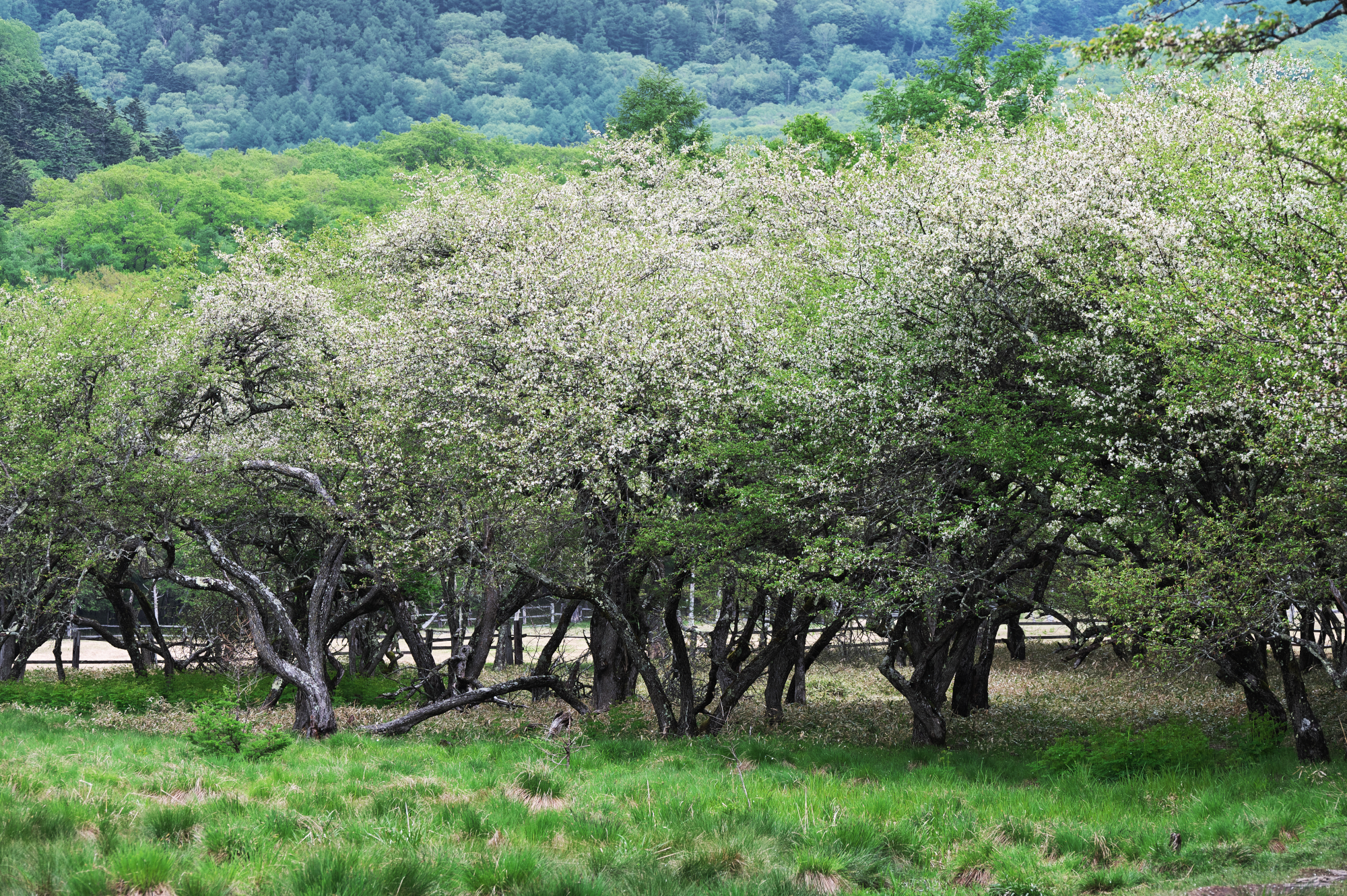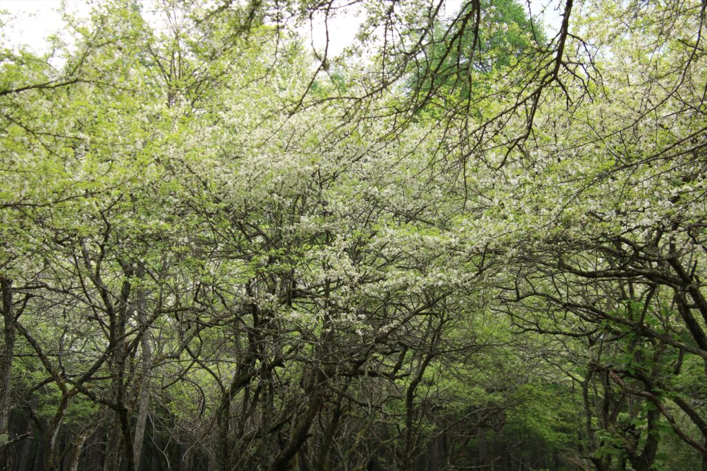 花数も多く、白に染まった木々が大変美しい!周辺ではズミの甘い香りも楽しめます。