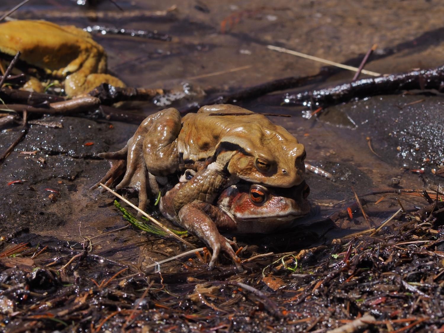 ドンッ!!正体はアズマヒキガエルです。子ガエルの時からは想像できないような大きさになる、なんとも面白いカエルです。